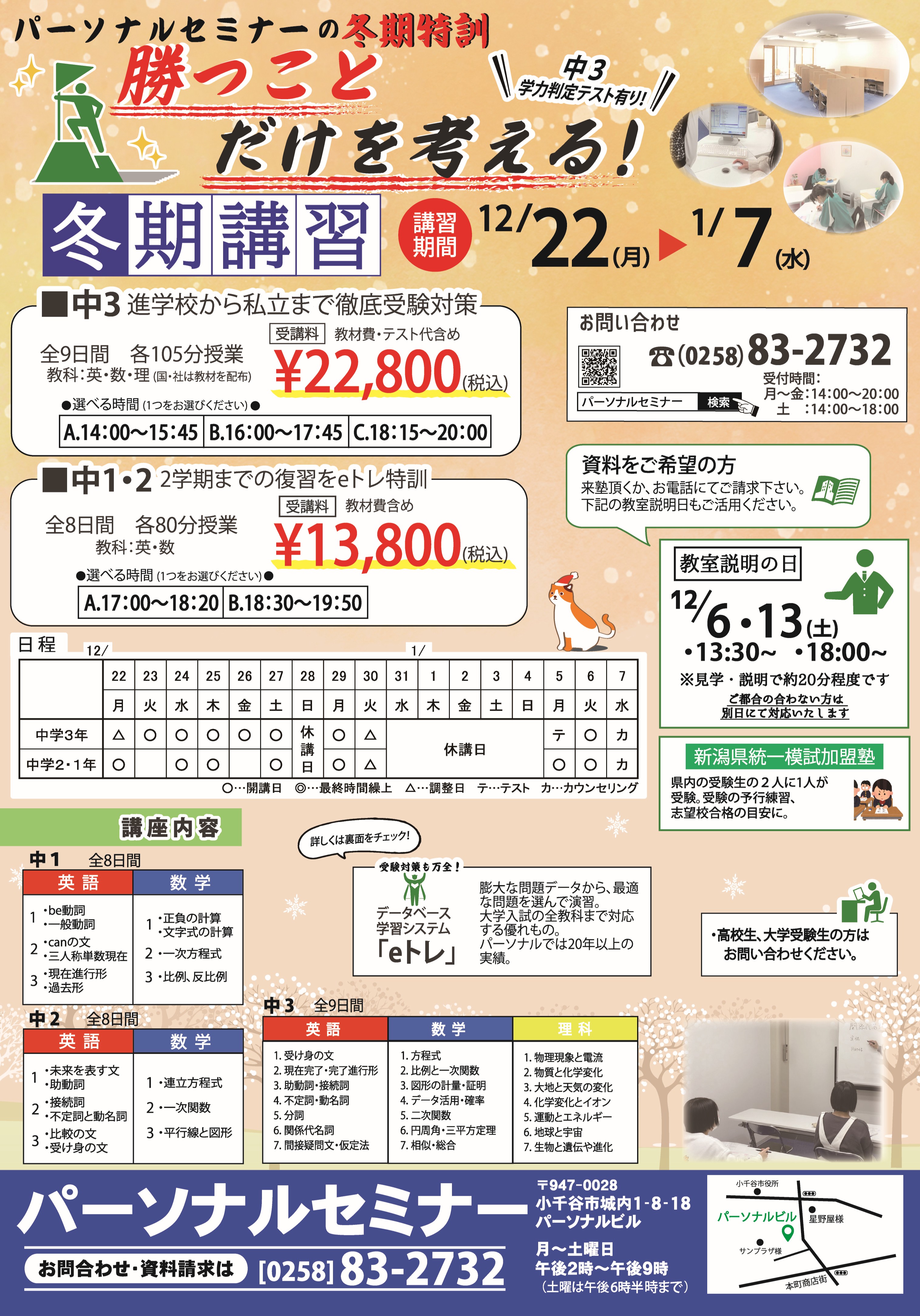 今週、来週の土曜に冬期講習の説明会を設けておりますので、お申込みをご検討のかた、お待ちしております。
