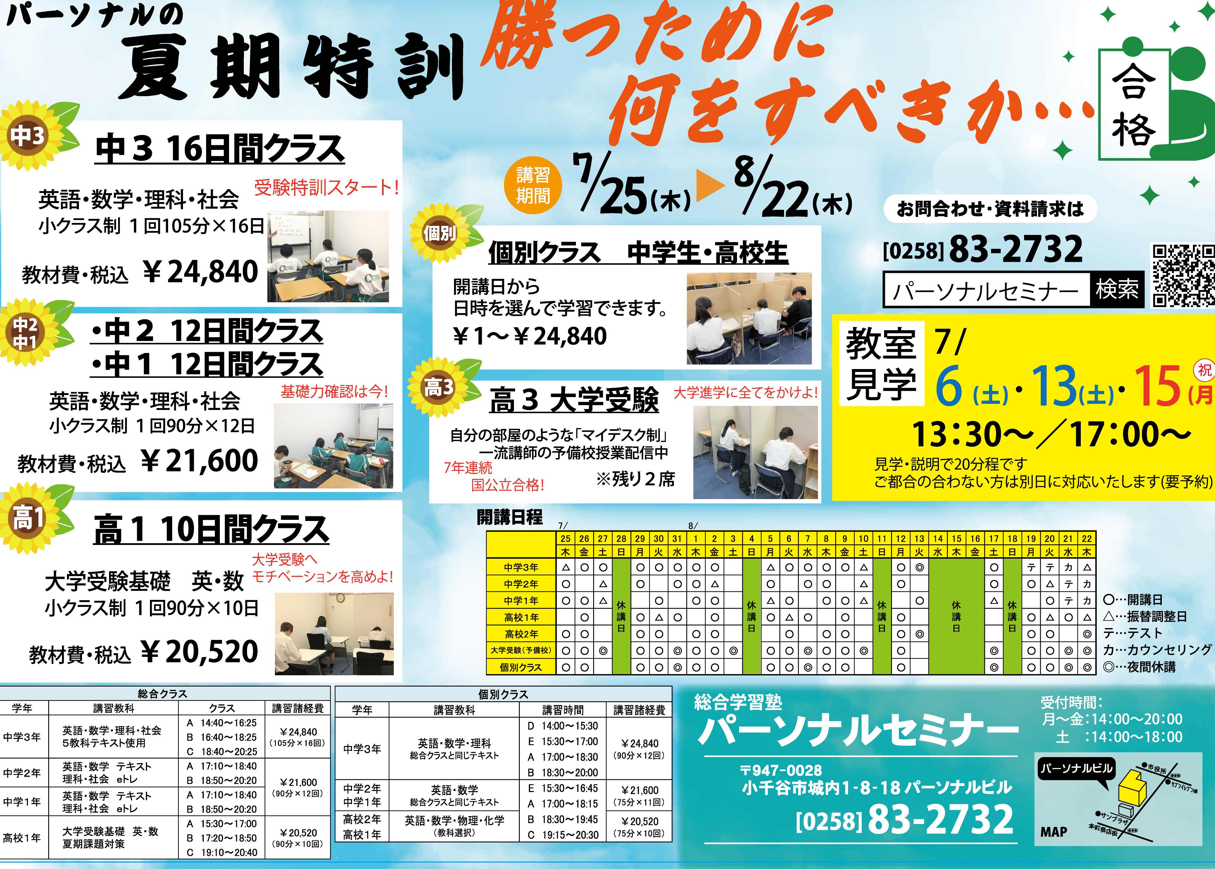 さて、パーソナルでは25日から夏期講習が始まっています。