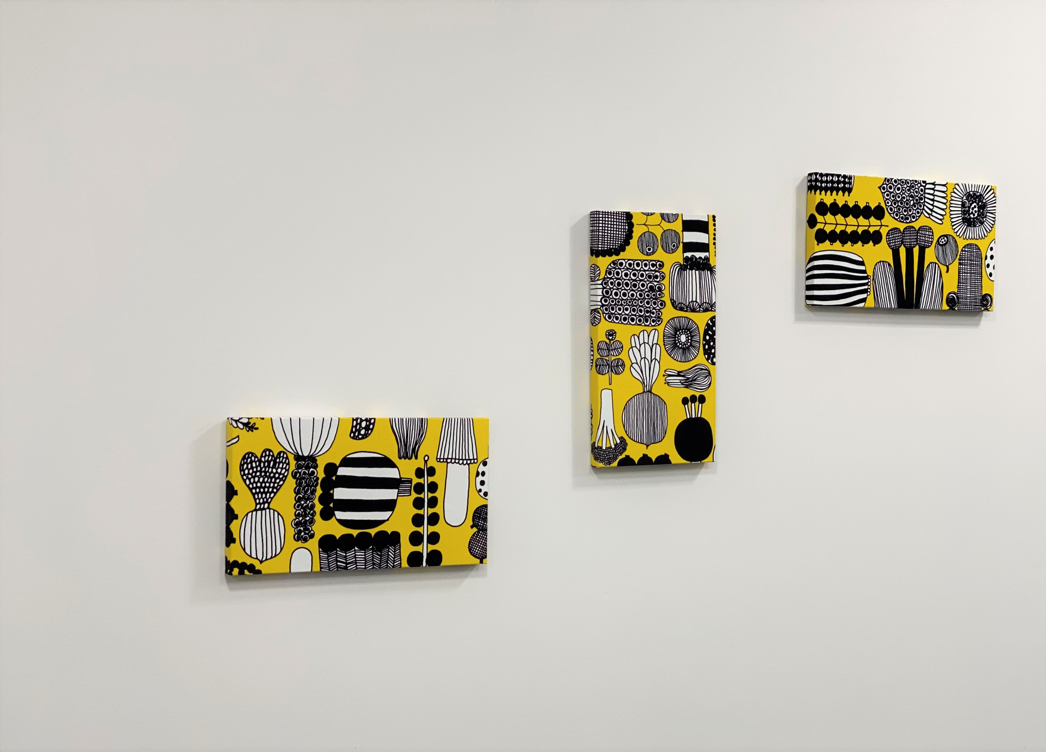 2Fがマリメッコなら1Fもマリメッコだ!と、元気の出る黄色ベースのマリメッコファブリックパネルを手に入れました。