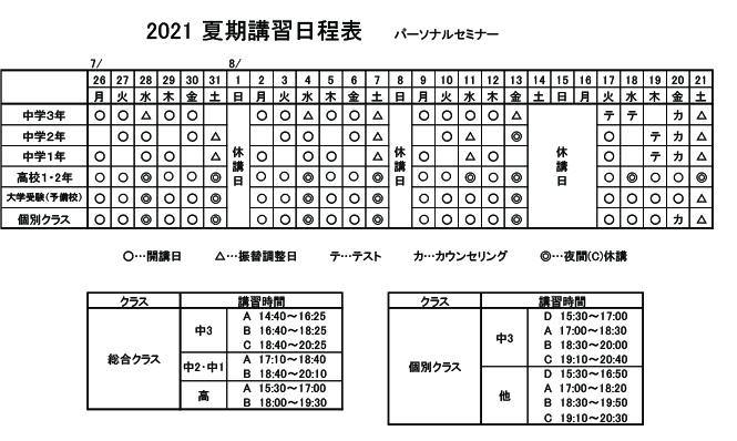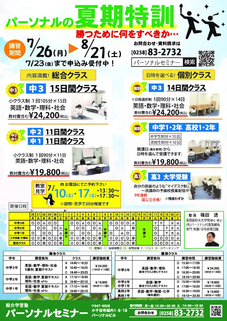 ■ パーソナルの夏期講習、受付中(2021年07月13日 15:02)